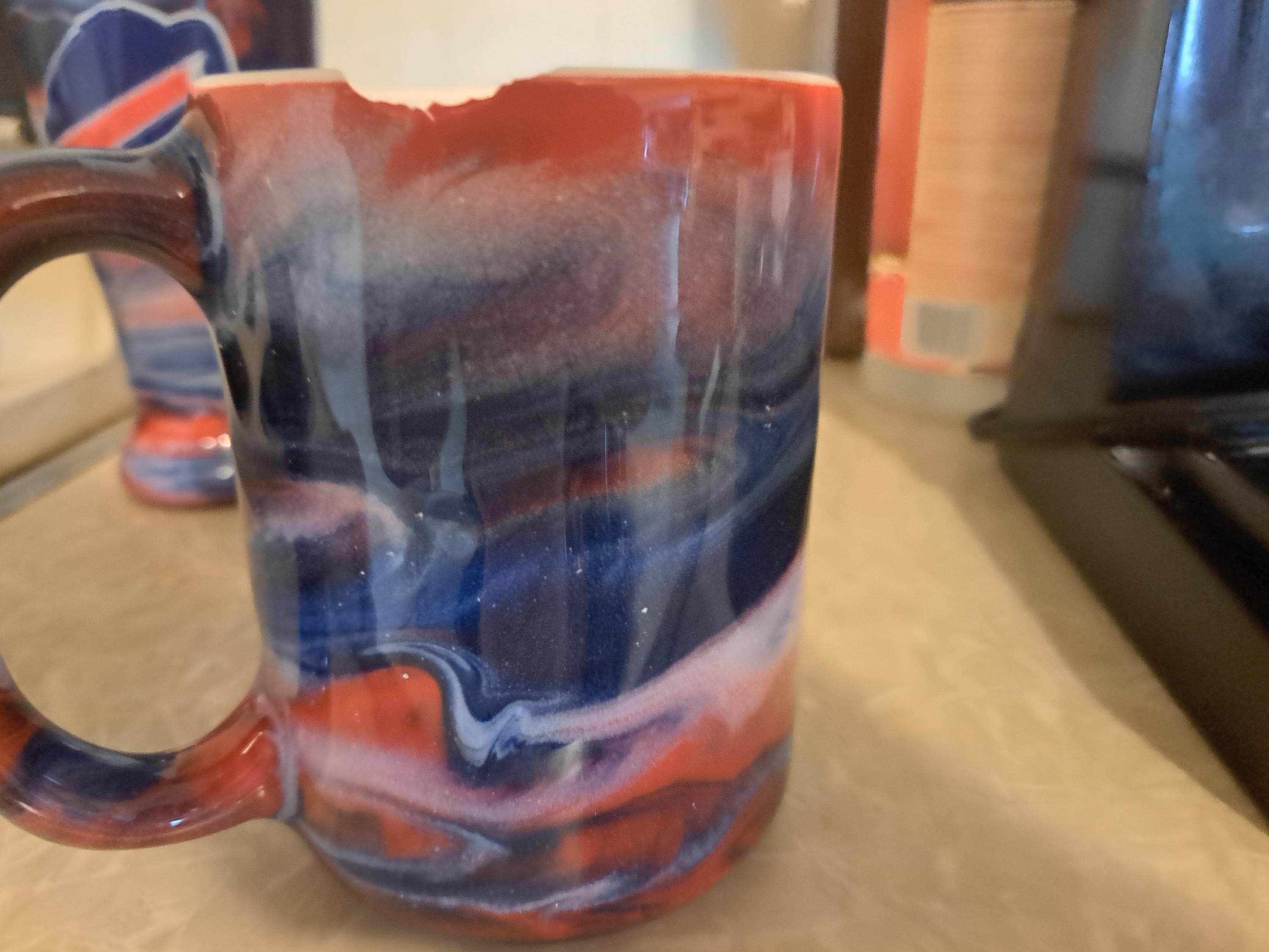 The glass and mug are beautiful .The mug has a chip on top. Would like to replace it. Thanks, Allan Ameele